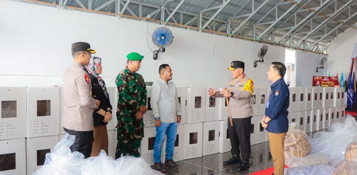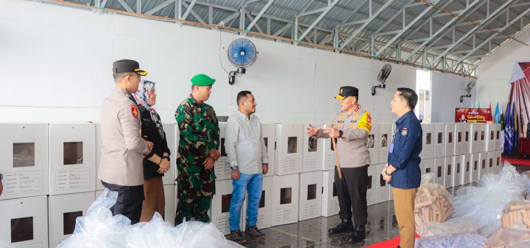 Utustoria.com, Banggai – Kepala Kepolisian Daerah Sulawesi Tengah, Irjen Pol. Dr. Agus Nugroho, S.I.K., S.H., M.H., melakukan pengecekan logistik Pemilihan Kepala Daerah (Pilkada) 2024 di Kantor Komisi Pemilihan Umum (KPU) Kabupaten Banggai pada Minggu (17/11/2024). Langkah ini dilakukan untuk memastikan kesiapan dan keamanan logistik jelang pelaksanaan pemungutan suara yang tinggal 10 hari lagi.