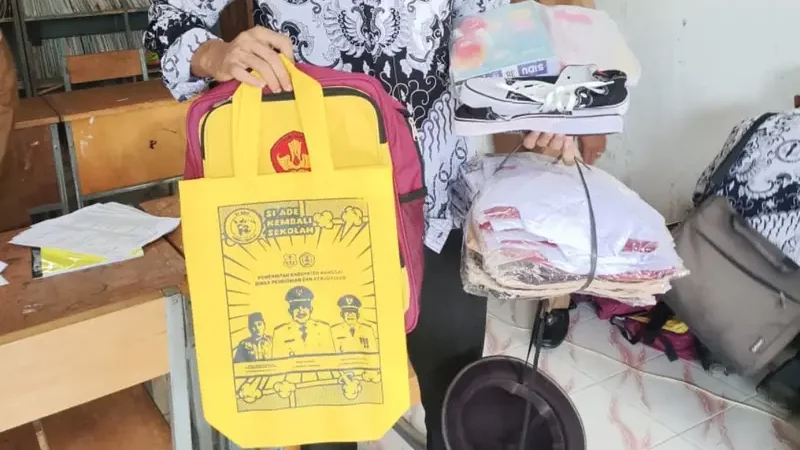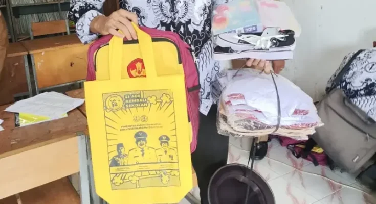 Bantuan yang disalurkan meliputi seragam sekolah dan tas kain Spunbond Handle/Goodle Bag yang bergambar Syafrudin Hinelo, S.STP, M.Si., selaku Kepala Dinas Pendidikan dan Kebudayaan Kabupaten Banggai, serta Bupati dan Wakil Bupati Banggai, yang merupakan Pasangan Calon (Paslon) petahana nomor urut 01.
