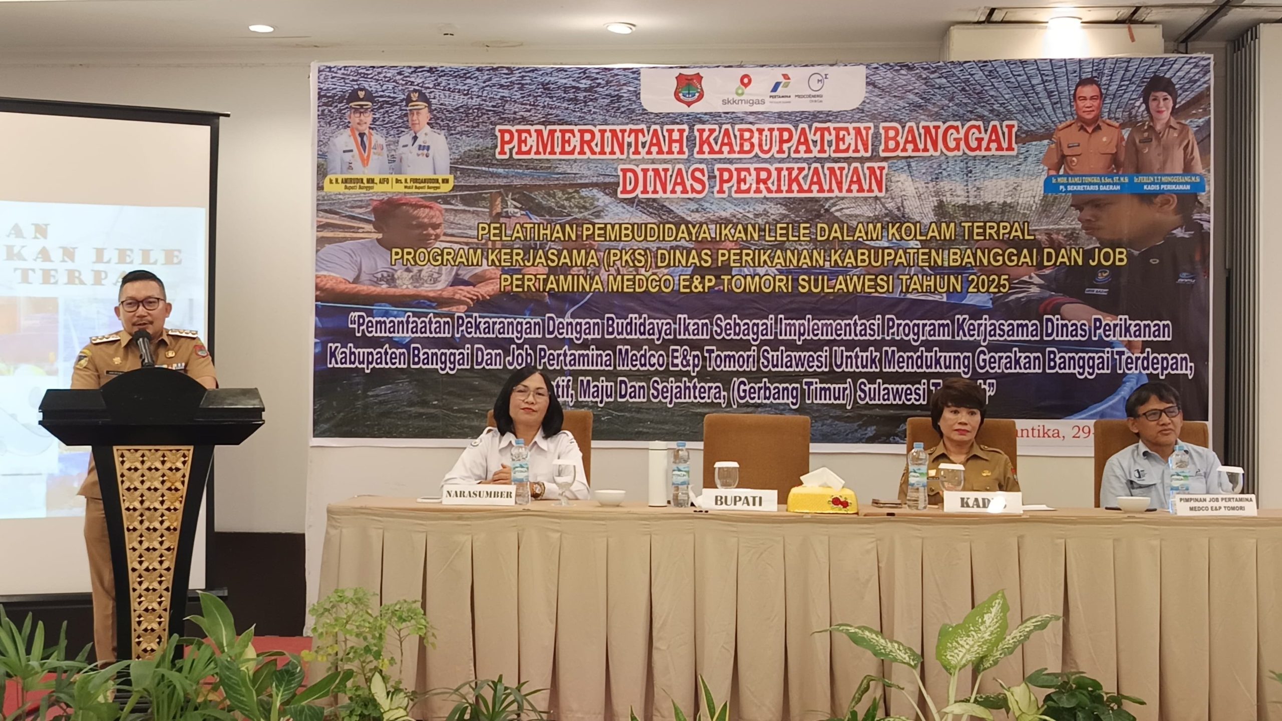 Kegiatan yang berlangsung selama dua hari, Selasa-Rabu (29–30 Juli 2025), di Luwuk ini mengusung tema: “Pemanfaatan Pekarangan dengan Budidaya Ikan sebagai Implementasi Program Kerjasama JOB Tomori dan Dinas Perikanan untuk Mendukung Gerakan Banggai Terdepan, Inovatif, Maju dan Sejahtera (Gerbang Timur Sulawesi Tengah)”.