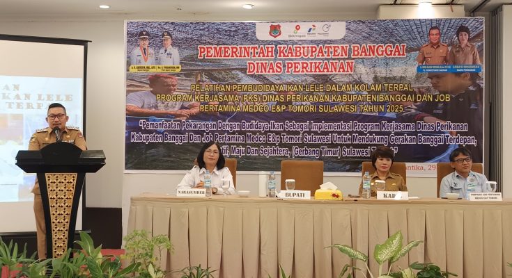 Kegiatan yang berlangsung selama dua hari, Selasa-Rabu (29–30 Juli 2025), di Luwuk ini mengusung tema: “Pemanfaatan Pekarangan dengan Budidaya Ikan sebagai Implementasi Program Kerjasama JOB Tomori dan Dinas Perikanan untuk Mendukung Gerakan Banggai Terdepan, Inovatif, Maju dan Sejahtera (Gerbang Timur Sulawesi Tengah)”.