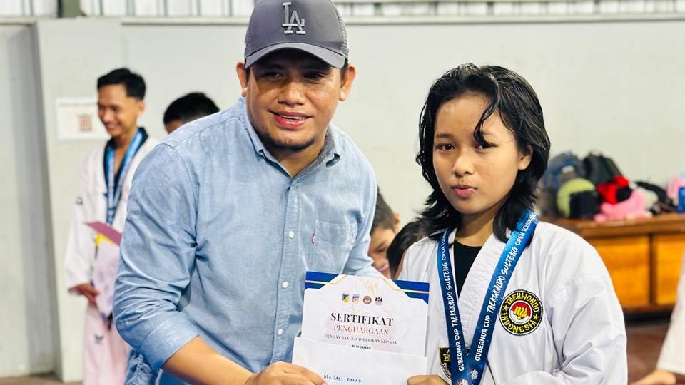 Utustoria.com, Banggai Ketua Banggai Tarkwondo Club (BTC) Suwardi menyerahkan bonus kepada 13 Atlet peraih medali di ajang Open Turnamen Taekwondo Gubernur CUP yang digelar di Palu, 18 Desember 2025.