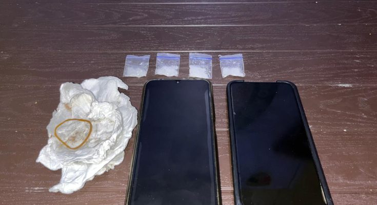 Ketika dilakukan penggeledahan ditemukan dua bungkus sabu yang terbungkus dalam kertas rokok. Saat diinterogasi, katanya dapat sabu 0,27 gram itu dari seorang pria untuk dijual kembali.