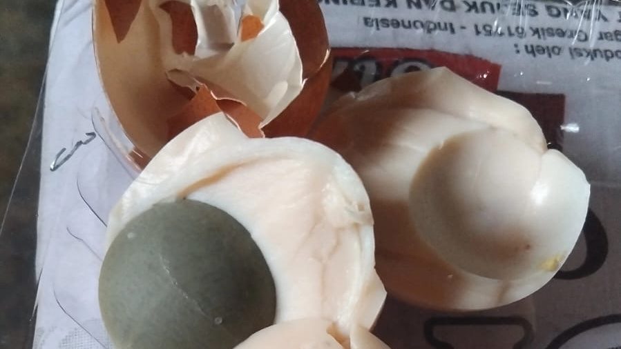 Photo: Telur busuk yang diterima salah satu ibu hamil sebagai penerima manfaat dari dapur MBG Singkoyo
