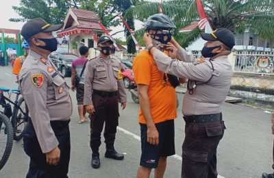 Kapolsek Luwuk Bagikan Masker Kepada Peserta Fun Bike Gowes di RTH Teluk Lalong