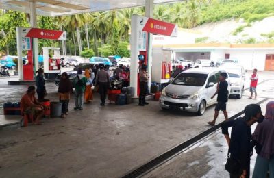 Sabhara Polres Banggai Tertibkan Antrian Jerigen di SPBU