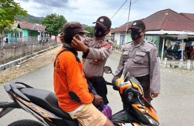 Bagikan Masker, Kapolsek Toili Ajak Warga Terapkan Protokol Kesehatan Cegah Covid-19