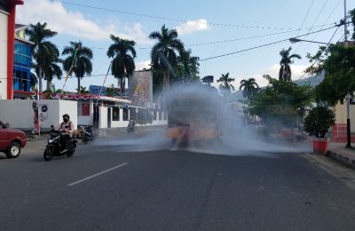 Gelar Penyemprotan Disinfektan Massal, Kapolres Banggai Lepas Personil Gabungan TNI Polri