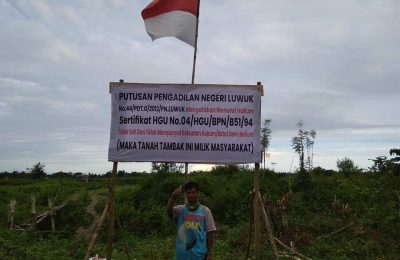 Photo: Spanduk Putusan Pengadilan Negeri Luwuk Tentang Kepemilikan Tanah Warga Utustoria.com, Banggai. Sejak mengantongi amar putusan Pengadilan Luwuk dan Surat...